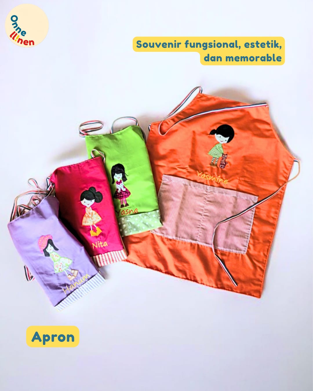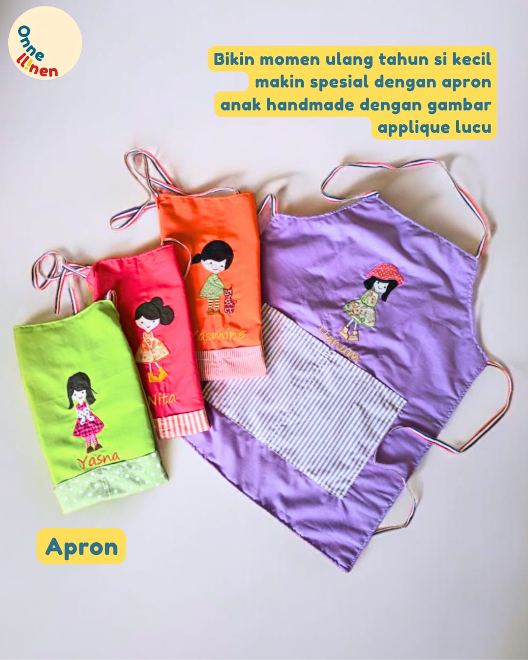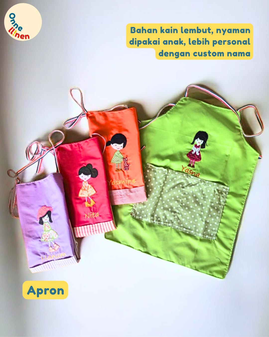 Dukung Kreativitas Tanpa Batas! Pesan Apron Karakter Custom Anda sekarang dan biarkan si kecil bereksplorasi dengan bebas. Hubungi tim Onnellinen untuk pilihan warna dan karakter favoritnya!