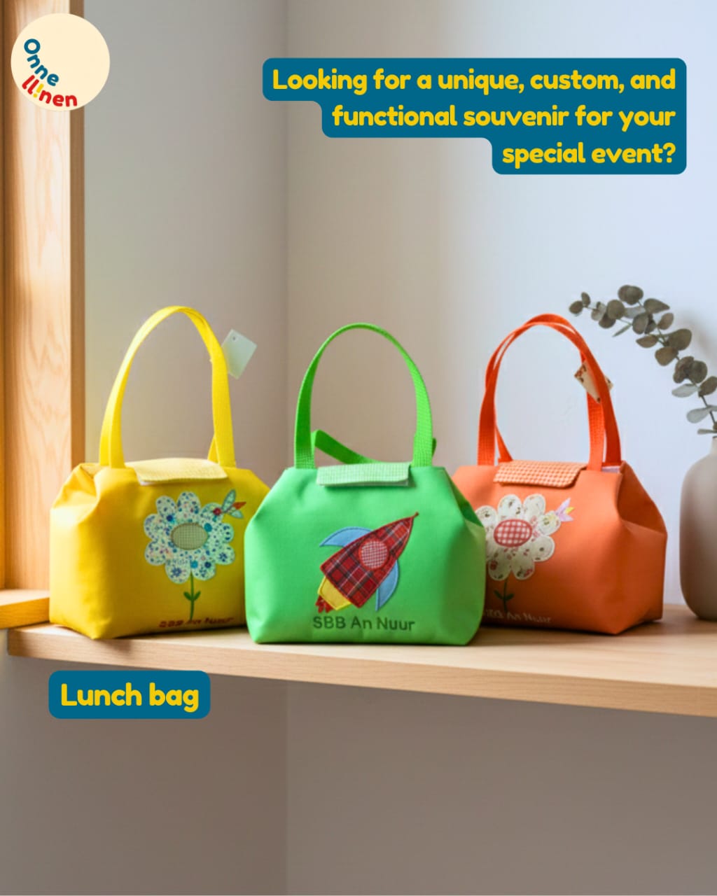 Sudah Terbayang Mau Custom Seperti Apa? Wujudkan lunch bag paling unik untuk si kecil sekarang juga. Hubungi tim Onnellinen hari ini dan mari kita desain bareng souvenir terbaik untuk momen spesial mereka! 🚀🌸🍱