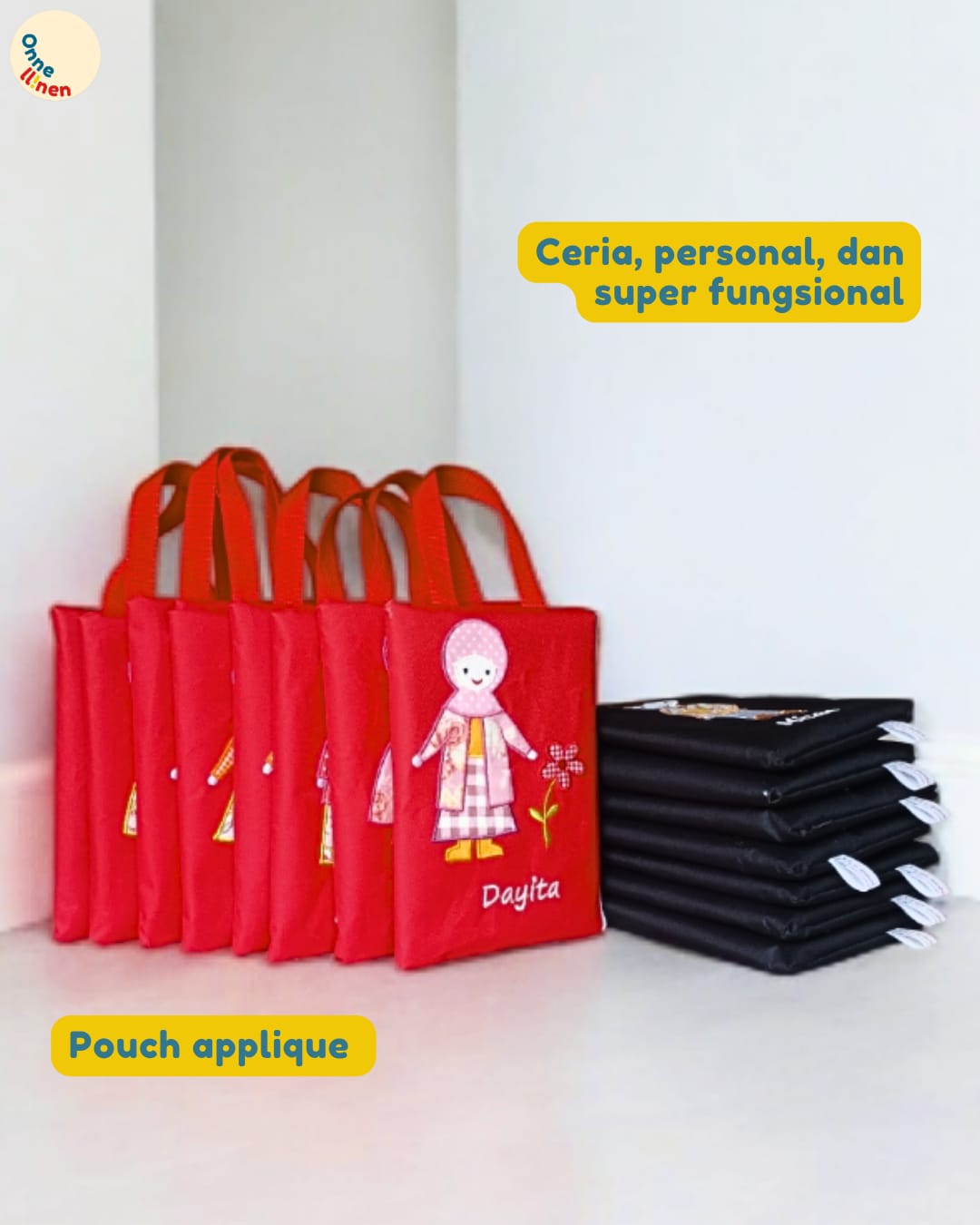 Siap Menciptakan Souvenir yang Berkesan? Jangan biarkan momen spesial Anda berlalu tanpa kenang-kenangan yang bermanfaat. Hubungi tim Onnellinen sekarang untuk mulai merancang Pouch Appliqué unik Anda sendiri!