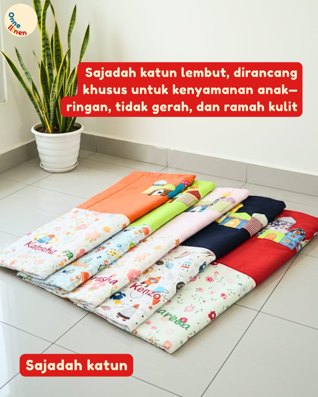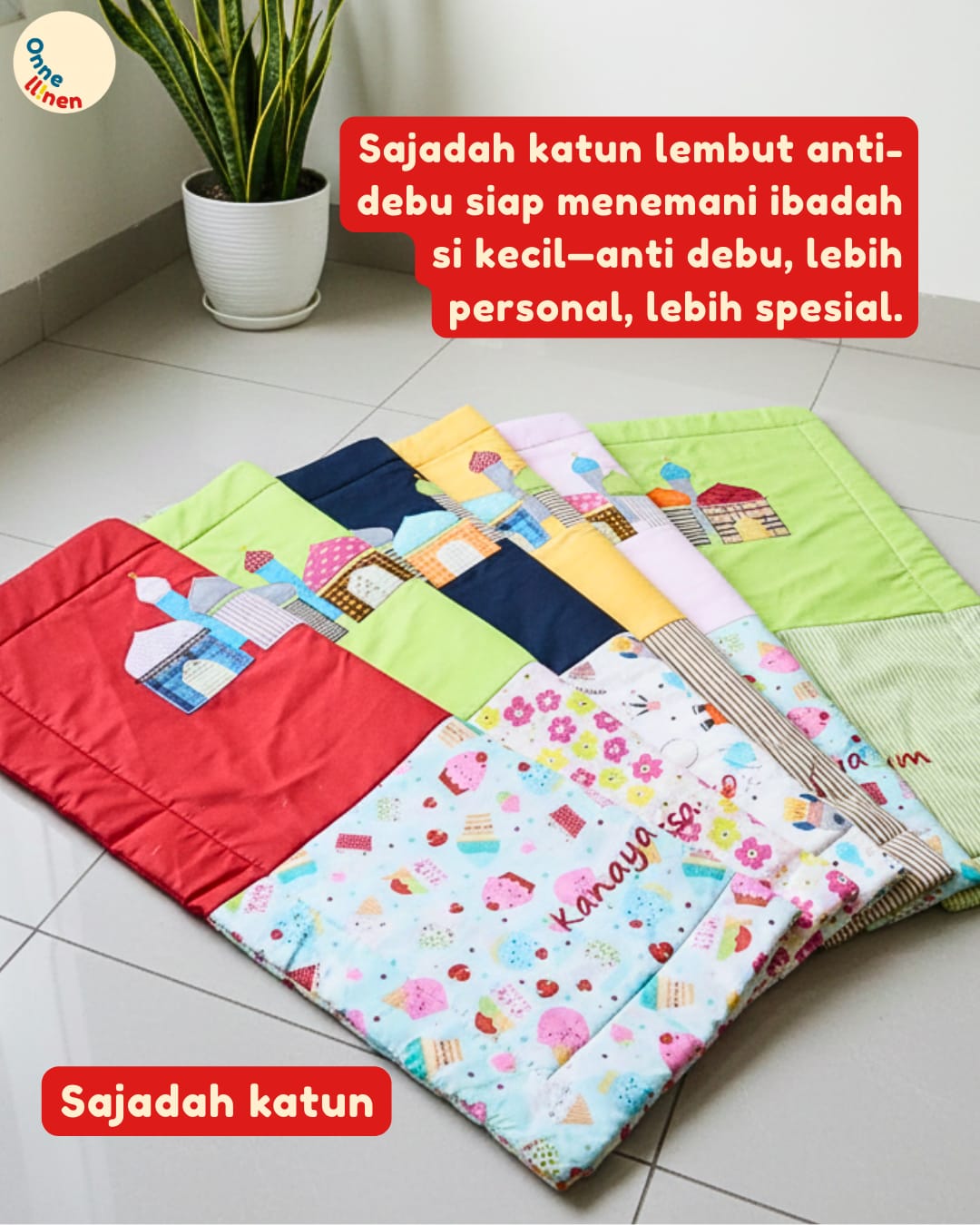 Wujudkan Sajadah Paling Personal! Pilih motif katun favorit Anda dan personalisasikan nama si kecil. Diskusikan dengan tim kreatif kami sekarang!
