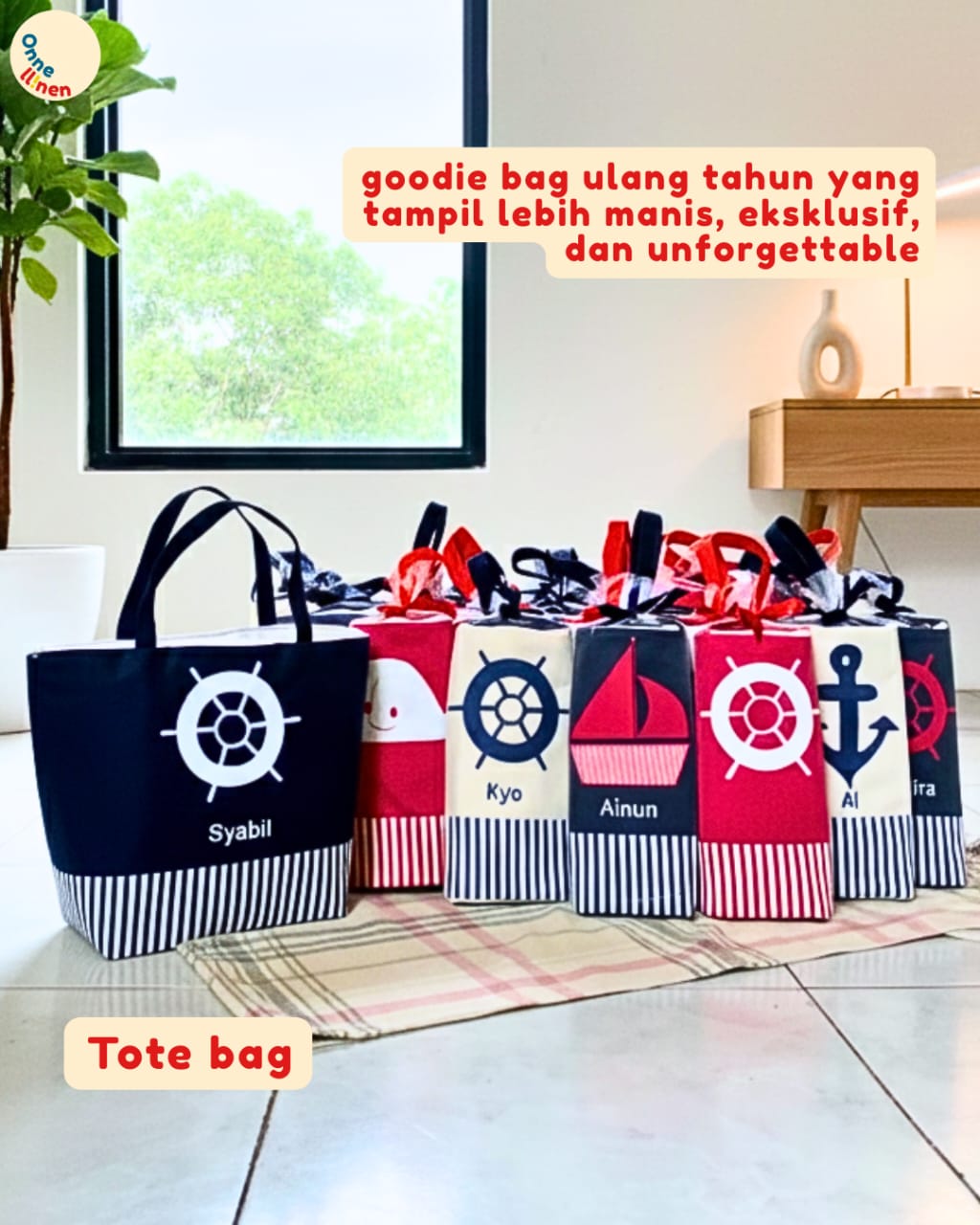 Di Onnellinen, kami memberikan panggung khusus bagi seri ini melalui produk unggulan kami: Totebag Seri Nautical. Totebag ini bukan sekadar wadah untuk acara sekali pakai; ia adalah pernyataan gaya. Dipilih oleh banyak pelanggan karena fleksibilitasnya, tas ini dirancang untuk menjadi bagian dari aktivitas harian penerimanya, mulai dari membawa buku hingga menjadi tas belanja cantik.