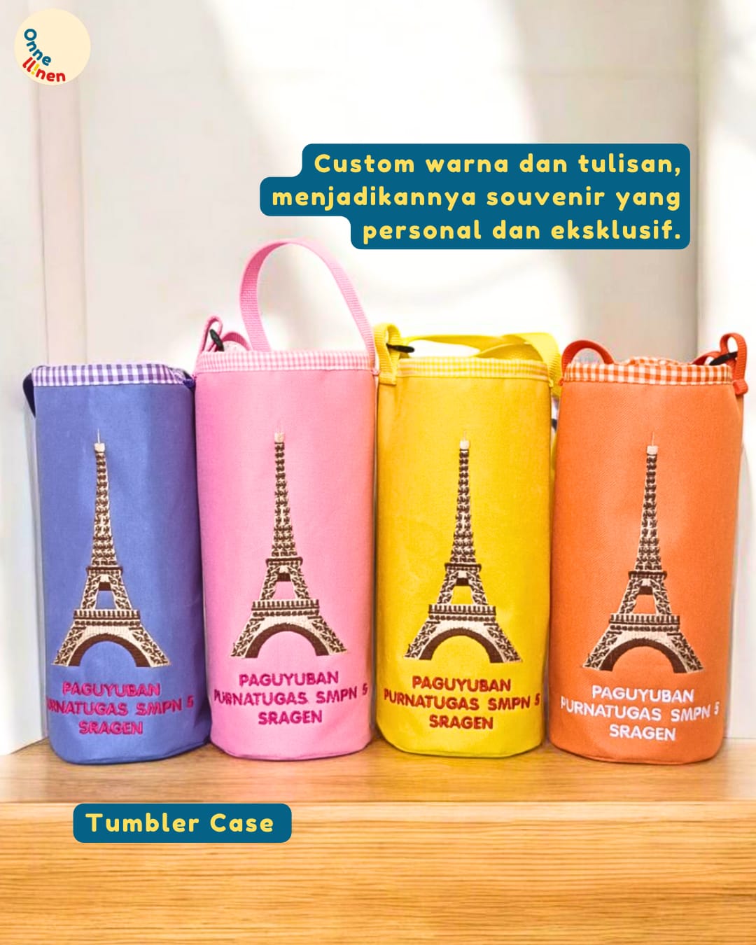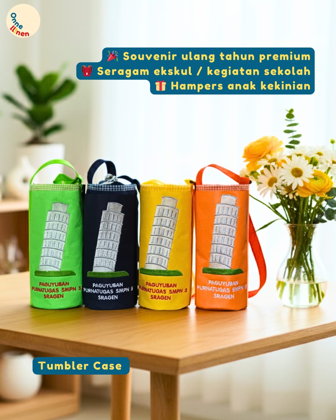 Custom & Eksklusif: Custom warna dan tulisan menjadikan Tumbler Case ini souvenir yang sangat personal dan eksklusif, cocok untuk acara sekolah, event paguyuban, hingga corporate gifting.